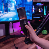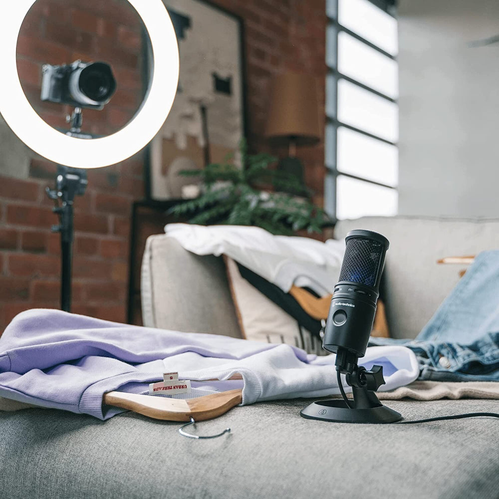 Модель оснащена USB-C портом для зручного підключення до комп'ютерів та ноутбуків, а також має вбудований 3,5 мм стерео вихід для моніторингу без затримок. Крім того, мікрофон оснащений сенсорним кнопкою вимкнення звуку з індикатором LED, що дозволяє швидко та безшумно вимкнути мікрофон під час запису. Завдяки вбудованому регулятору гучності навушників та мікс-контролю, користувачі можуть легко налаштувати баланс між мікрофоном та комп'ютерним аудіо. Комплектація включає стійку для столу, адаптер для кріплення на штатив та USB-C кабель, що робить AT2020USB-X ідеальним вибором для тих, хто шукає простоту використання та високу якість звуку.