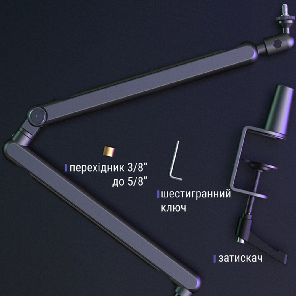 Fifine BM88 – ідеальний вибір для створення професійного аудіо-середовища у вашому студійному просторі, офісі або вдома. Забезпечує високу стабільність та надійність для вашого мікрофона під час подкастів, виступів або запису звуку. Повне регулювання пангторафу дозволяє зручно налаштувати його до вашого комфорту та розміру робочого столу. Багато варіантів налаштування кута нахилу забезпечують максимальну гнучкість використання. Підставка здатна витримати вагу практично будь-якого мікрофона, максимальне навантаження до 1.5кг.