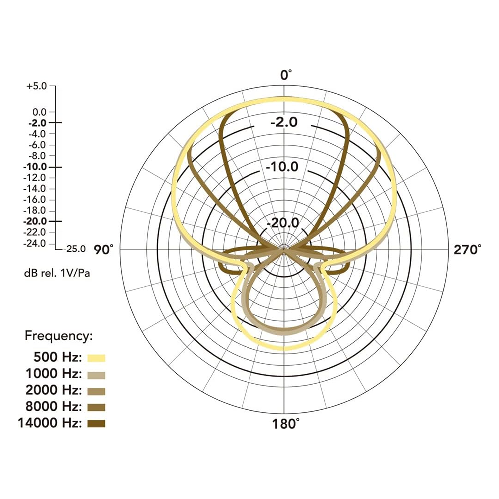 Суперкардіоїдна полярна діаграма фокусується на звуці перед мікрофоном, зменшуючи шуми з боків і ззаду. Мікрофон має низькошумну електроніку та чутливий конденсатор, що забезпечує детальне звучання.