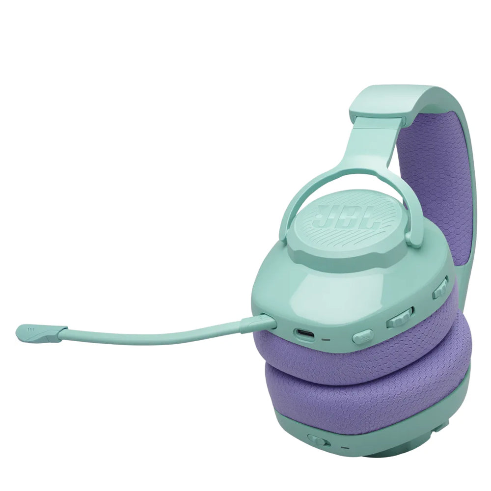 JBL Quantum 360 Cyan повнорозмірні бездротові ігрові навушники з низькою затримкою через USB-донгл, мікрофон на штанзі, підходять для довгих сесій і заряджаються під час гри.