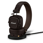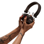 Marshall Major V — це бездротові Bluetooth-навушники, а точніше гарнітура, оскільки оснащені вбудованим мікрофоном. Конструктивно ця модель майже не відрізняється від свого попередника четвертої серії, за винятком нової кнопки «М» для розширеного управління. Щодо зовнішнього вигляду, за свою ціну ви навряд чи знайдете щось красивіше та елегантніше. Дизайн навушників у міру старомодний, що цілком зрозуміло — впізнаваність бренду Marshall має бути стовідсотковою. При цьому Marshall досі не провів ребрендинг, тому логотип – напис Marshall, виконаний фірмовим шрифтом, – залишається незмінним, як і 50 років тому. Втім, Marshall Major V не лише чудово виглядають, але й вирізняються відмінною ергономікою! Вони дуже легкі й зовсім не тиснуть ні на вуха, ні на голову. На правій чашці розташовані універсальна кнопка-джойстик, роз'єм USB-C для зарядки та аналоговий вхід/вихід 3.5 мм. На лівій чаші з'явилася нова кнопка "М", яку можна налаштувати для активації Spotify Tap, зміни налаштувань еквалайзера або виклику голосового помічника.