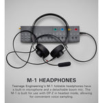 Teenage Engineering M-1 - навушники з мікрофоном для семплювання для Teenage Engineering OP-Z. Модель створена спеціально для використання з синтезатором Teenage Engineering OP-Z і дає змогу одночасно слухати та створювати музику. Модель оснащена 30 мм драйверами. На обох чашах моделі розташовані роз'єми для під'єднання 3,5 мм джека: в один порт під'єднується комплектний кабель завдовжки 1,2 м, у другий - мікрофон. Порти універсальні, під'єднати кабелі можна як у ліву, так і в праву чашу. Навушники можна під'єднати безпосередньо до синтезатора OP-Z, щоб чути звук, що генерується інструментом. Підключений мікрофон можна використовувати для запису і семплювання голосу. Також M-1 може працювати як розгалужувач для навушників: під'єднавши до одного з виходів другу пару навушників, користувачі можуть поділитися своєю музикою. Одна з чаш оснащена вбудованим мікрофоном і універсальною кнопкою Universal Button, яка дає змогу використовувати навушники як гарнітуру. Натискання кнопки активує мікрофон, дає змогу відповідати на дзвінки та перемикати треки в плеєрі смартфона.