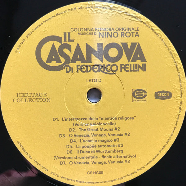 Nino Rota – Il Casanova Di Federico Fellini (Colonna Sonora Originale) [2LP] — перевидання оригінального саундтреку до фільму Федеріко Фелліні «Казанова» (1976), написаного геніальним італійським композитором Ніно Ротою. Музика майстерно поєднує барокові інтонації з експериментальною оркестровкою, передаючи атмосферу іронії, драматизму та розкоші, характерну для стилю Фелліні.