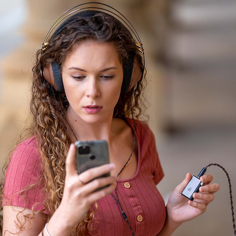 iFi GO Blu — ультракомпактний Bluetooth-ресивер і ЦАП/підсилювач із фірмовим дизайном, приємною ергономікою та якісним звуком. Корпус виконаний зі сталі, латуні й алюмінію, оснащений зручним рифленим регулятором гучності та мінімалістичними елементами керування. Має USB-C для зарядки та роботи як USB-ЦАП, виходи 3.5 мм і 4.4 мм.