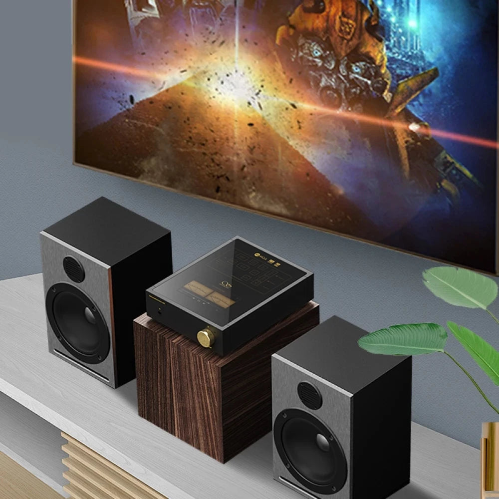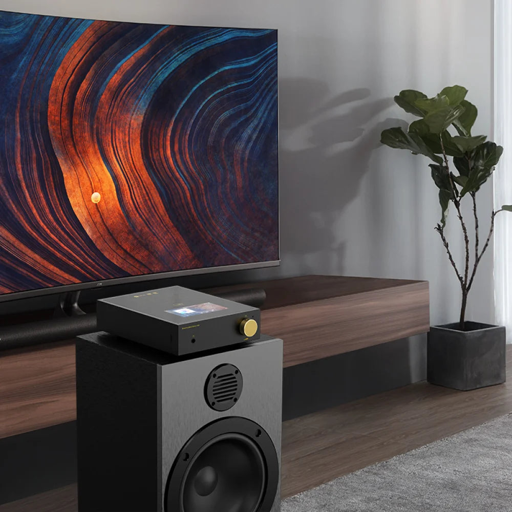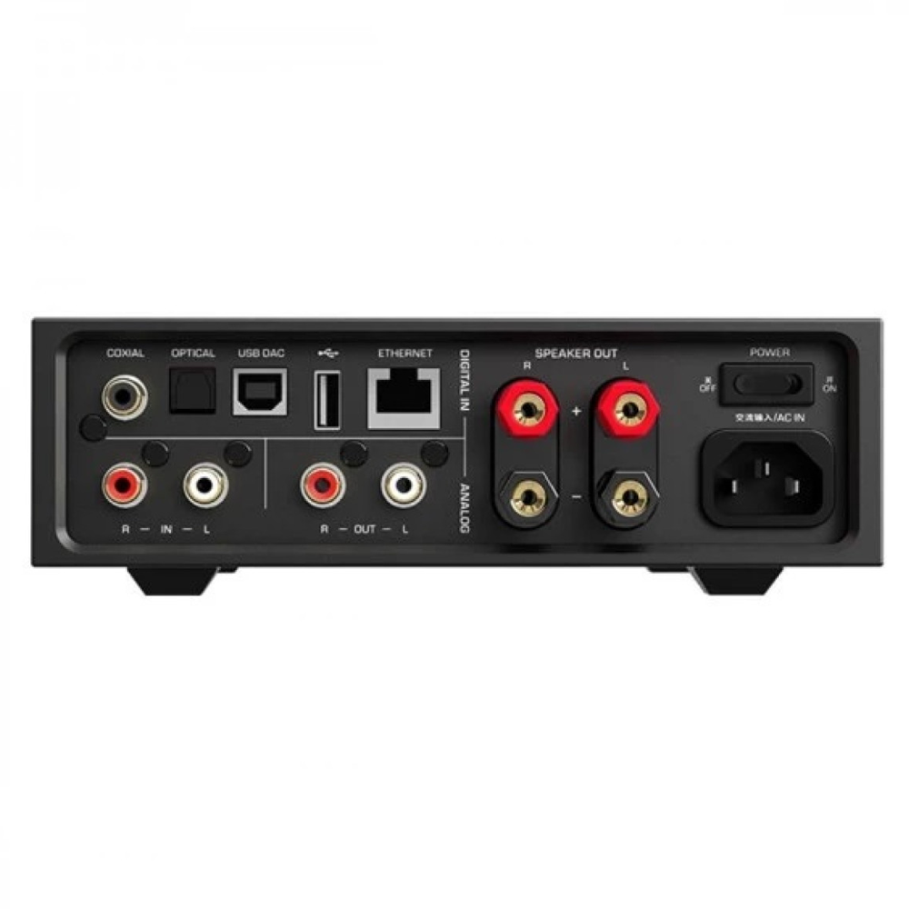 Оснащений Android, він підтримує стримінгові сервіси та широкий спектр підключень — Wi-Fi, Bluetooth, Ethernet. В основі ЦАП AK4493EQ з підтримкою PCM 32 біт/768 кГц і DSD512. Підсилювач класу D ICEpower забезпечує до 2×100 Вт на 4 Ом, а окремий каскад OP+BUF відповідає за навушники. Дисплей 4,7", корпус металевий. Підходить для будь-якого сценарію домашнього аудіо.