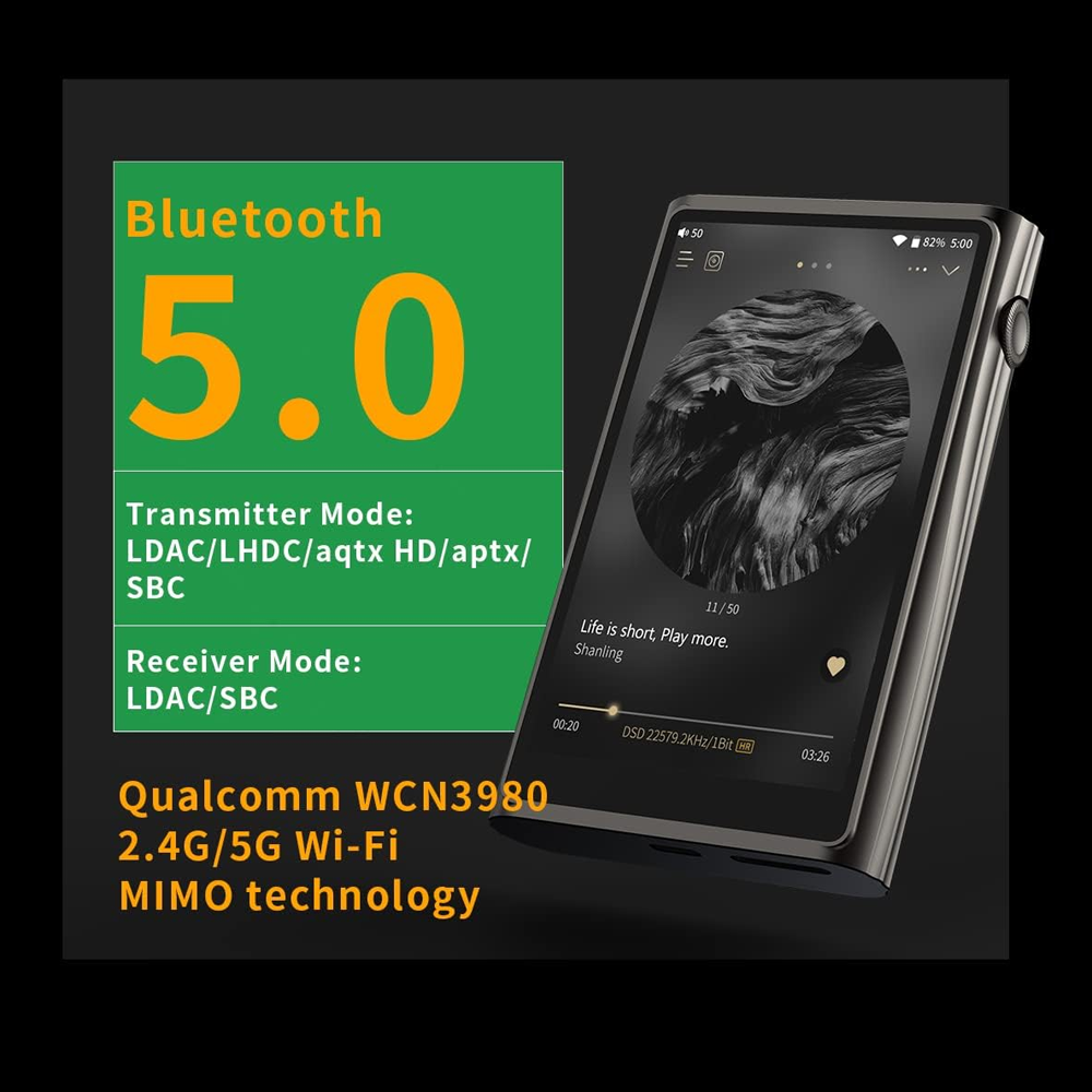 Акумулятор на 7000 мА·г забезпечує до 10 годин роботи. Побудований на базі Snapdragon 665, плеєр працює під Android 10, підтримує Wi-Fi 2.4/5 ГГц, Bluetooth 5.2 з LDAC, LHDC, aptX HD, aptX та SBC.