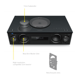 Система оснащена п’ятьма спеціально розробленими динаміками: два твітери з шовковими куполами та лінзами для рівномірного звучання, два СЧ/НЧ динаміки та окремий сабвуфер. Передня решітка забезпечує захист і правильне розповсюдження звуку.