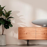 Понад 15 років кожне нове покоління Zeppelin було унікальним завдяки своєму справді красивому дизайну, де, як і в усіх продуктах Bowers & Wilkins, форма диктується акустичними принципами. Новий, повністю перероблений Zeppelin доступний у двох варіантах оздоблення: темному (опівнічно-сірий) та світлому (перлинно-сірий). Тепер він також оснащений відключуваним, регульованим підсвічуванням, що створює ефект "ореолу" на металевій підставці. Новий Zeppelin являє собою повноцінну стереосистему в одному корпусі. Він має окремі динаміки для лівого та правого каналів, розташовані навколо великого центрального НЧ-драйвера (сабвуфера). Усі динаміки працюють від підсилювачів загальною потужністю 240 Вт. Ці компоненти преміум-класу встановлені у наджорсткому корпусі, оптимізованому методом кінцевих елементів (FEA). Корпус ретельно виготовлений для забезпечення найкращих акустичних характеристик, з мінімальним обрамленням по краях кожного динаміка, що сприяє чудовому розсіюванню звуку. Результатом є стереозвук, що заповнює всю кімнату, з яким не може зрівнятися жоден конкурент в одному корпусі.