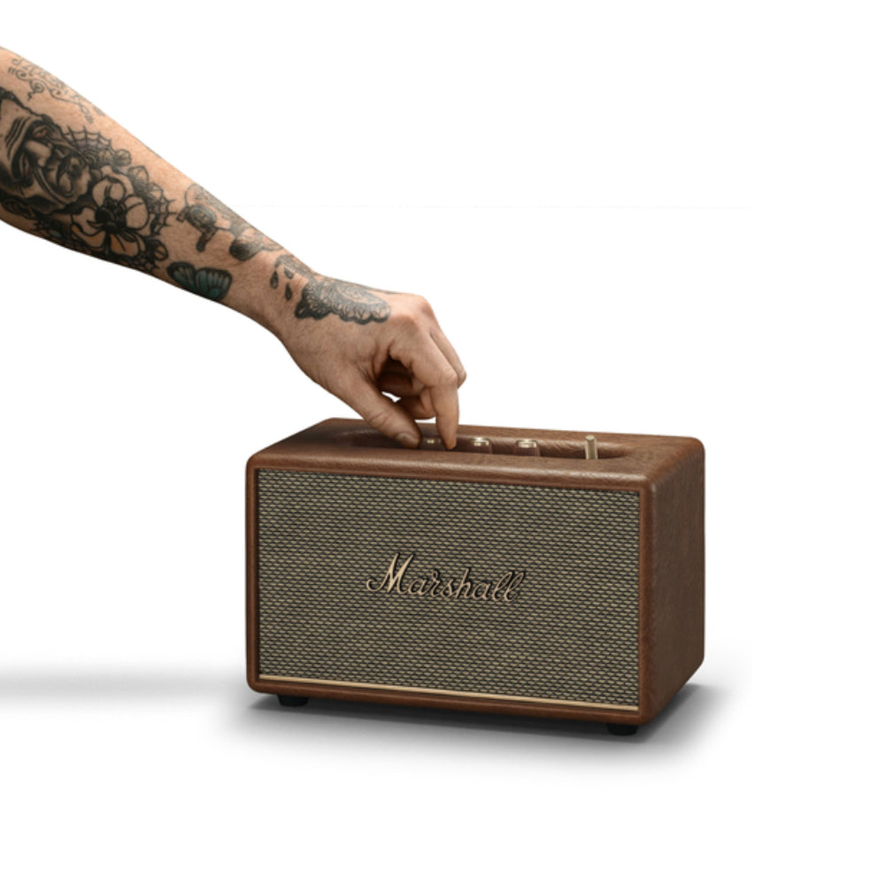 Acton III — це компактна домашня колонка з ефектним фірмовим звучанням Marshall. Нове покоління Acton має високочастотні динаміки, розташовані під кутом, та покращені хвилеводи для незмінно якісного звуку в усіх куточках кімнати. Ця двосмугова система гарантує збалансоване звучання з дзвінкими, ширяючими високими та збалансованими, рокітливими низькими частотами. Вбудована динамічна тоно-компенсація регулює тембральний баланс звуку для забезпечення чудової якості на будь-якій гучності. Система налаштування під приміщення виправляє спотворення від сусідніх поверхонь, що впливають на звук. Дизайн Acton III став більш сучасним, але залишається вірним духу Marshall. Колонку прикрашають фірмові деталі, як-от шрифт Marshall та латунні кнопки керування, що уособлюють спадщину рок-н-ролу. Acton III зроблена без використання ПВХ, на 70% складається з переробленого пластику та лише з матеріалів без використання тваринних компонентів. Ця міцна та надійна колонка виготовлена з високоякісних матеріалів та компонентів.