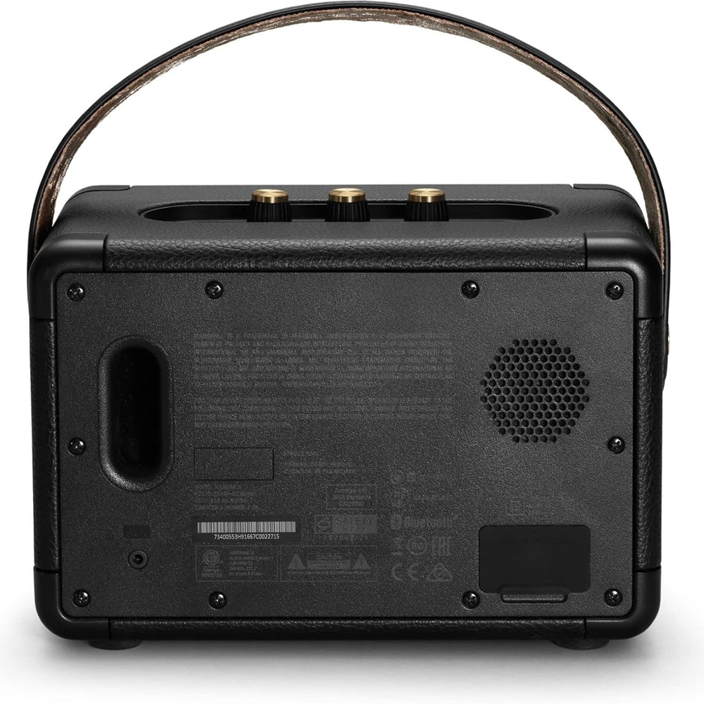 Вирушайте в дорогу з портативною колонкою Marshall Kilburn II. Вільна від дротів і шнурів, ця Bluetooth-колонка забезпечує 20+ годин портативного відтворення на одному заряді. Цей сильний духом герой важить лише 6 фунтів. І це найгучніша колонка у своєму класі. Вона відтворює чисті середні частоти, глибокі баси та розширені високі частоти, які не мають собі рівних серед колонок такого розміру, а її різноспрямований звук занурить вас у музику, де б ви не знаходилися - в приміщенні чи на вулиці. Відлунюючи спадщину рок-н-ролу, Kilburn II має суцільну металеву решітку, яка нагадує сталеву сітчасту решітку, що зустрічається на багатьох мікрофонах, і ремінь для перенесення, натхненний гітарою, для легкого перенесення. Кутові заглушки, встановлені врівень з поверхнею, і водонепроникна конструкція роблять його надзвичайно міцним і довговічним. Kilburn II здатен витримати навіть найдовші дні в дорозі. Виріб сумісний з декількома мережами живлення, діапазон яких становить 100-240 В.