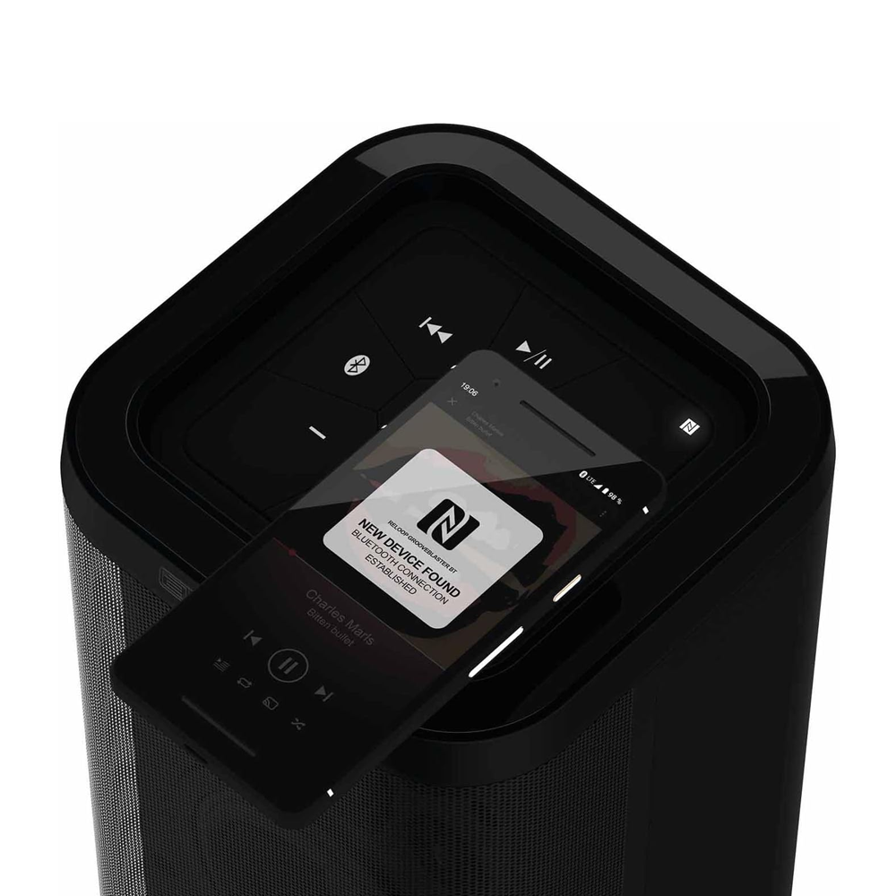 Триканальний поділ частот забезпечує збалансований і чистий звук: два 3-дюймові середньочастотні, один 1-дюймовий високочастотний та 6-дюймовий низькочастотний динаміки створюють широке стереозвучання з потужними басами. За допомогою функції Smart Link можна бездротово підключити два Groove Blaster BT для подвоєння гучності або організації звучання в кількох кімнатах одночасно.