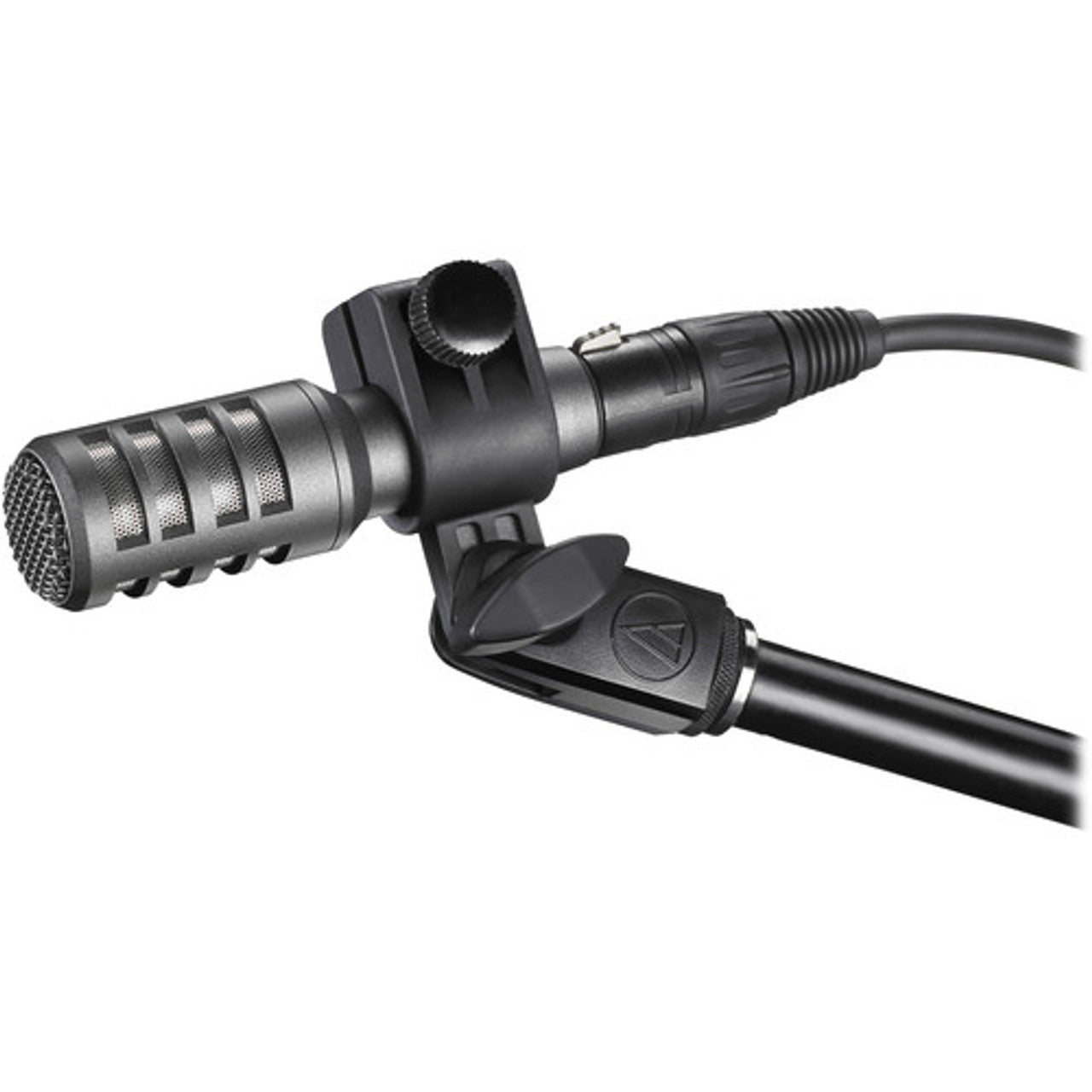 Мікрофон Audio-Technica AE2300 із серії Artist Elite — це динамічний інструментальний мікрофон з кардіоїдною діаграмою спрямованості, спеціально розроблений для зняття звуку духових, гітарних комбопідсилювачів, ударних і перкусійних інструментів. Завдяки унікальній конструкції діафрагми з подвійним куполом, він забезпечує точну передачу високих частот і мінімізує позаосьове забарвлення. Його характеристика спрямованості залишається стабільною у всьому частотному діапазоні, а міцна металева конструкція та низькопрофільний корпус роблять його ідеальним для сценічного використання. Мікрофон витримує високі рівні звукового тиску, оснащений перемикаємим фільтром низьких частот (6 дБ/окт. на 6 кГц), який допомагає прибрати різкі шуми, не впливаючи на загальний тон. У комплект входить тримач AT8471, захисний чохол і різьбовий адаптер.