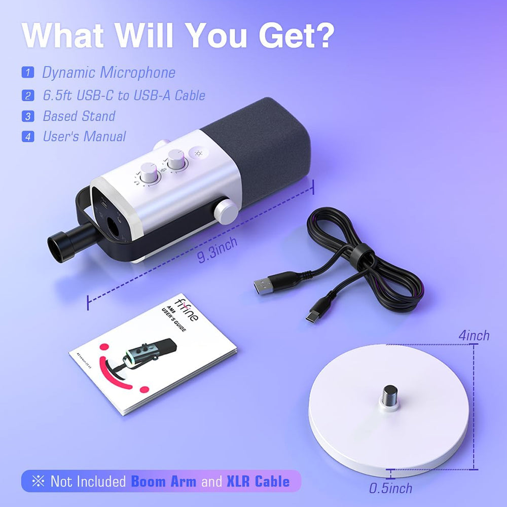 Комплектація: 1 X USB/XLR мікрофон; 1 X Павук; 1 X Настільна підставка; 1 X Кабель USB – Type-C (2 м); 1 X Посібник користувача