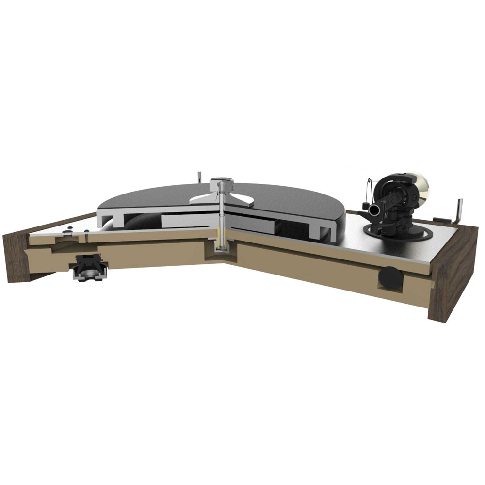 Опорний диск виготовлений з алюмінієвого сплаву з внутрішнім демпфуванням TPE, точно збалансований для стабільного обертання. Покращене субшасі стало важчим та жорсткішим, що значно зменшує резонанси.