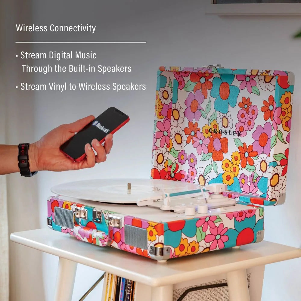 Crosley Cruiser Plus — портативний вініловий програвач у фірмовому чемоданному дизайні, який поєднує ностальгійний ретро-стиль із сучасними функціями. Програвач легкий та компактний, має вбудовані стереодинаміки, тож можна слухати платівки без додаткової акустики. Підтримує три стандартні швидкості обертання платівок та оснащений ремінним приводом для плавного та точного відтворення музики.