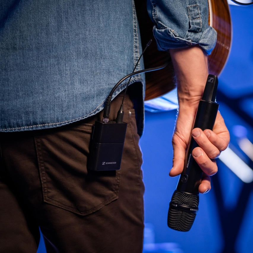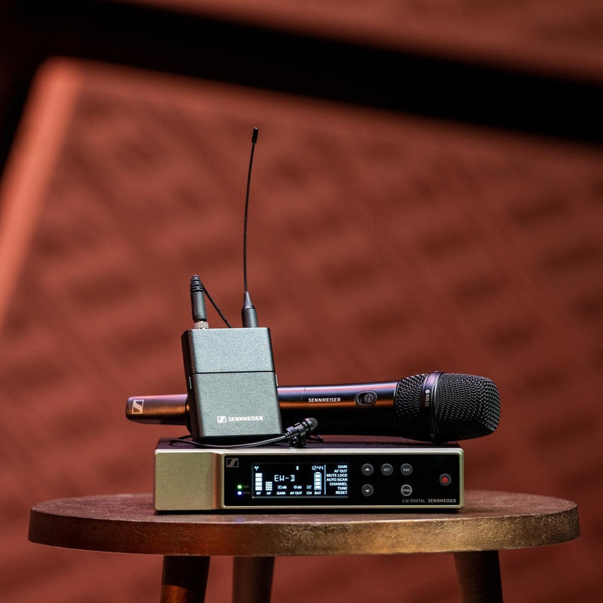 Sennheiser EW-D ME2/835-S SET (Q1-6) — універсальна цифрова бездротова система, яка поєднує body‑pack передавач із двома варіантами капсул: петличним мікрофоном ME 2 для озвучення мови й конференцій, а також динамічною капсулею MMD 835‑S для вокалу або мікрофонних виступів. Це гнучке рішення підходить для спікерів, акторів, виконавців та ведучих, які хочуть мати варіант як для голосового виступу, так і для співу.