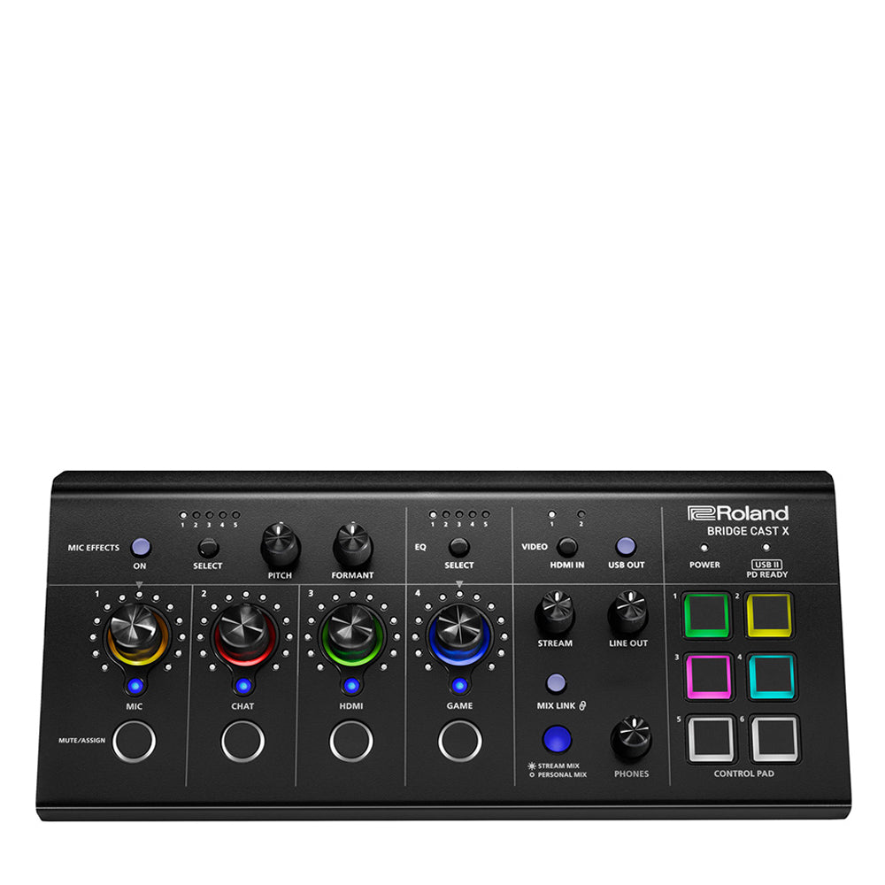 BRIDGE CAST X зберігає всі легендарні аудіоможливості серії: професійний XLR-вхід з підсиленням +75 дБ для топових мікрофонів, подвійну звукову шину для незалежного налаштування звуку собі та глядачам, а також фірмовий змінник голосу Roland. Це повний центр керування ефіром, який дозволяє перемикатися між відеоджерелами, налаштовувати ігровий еквалайзер та запускати фонову музику фізичними кнопками, забезпечуючи максимальну концентрацію на грі та спілкуванні з аудиторією.