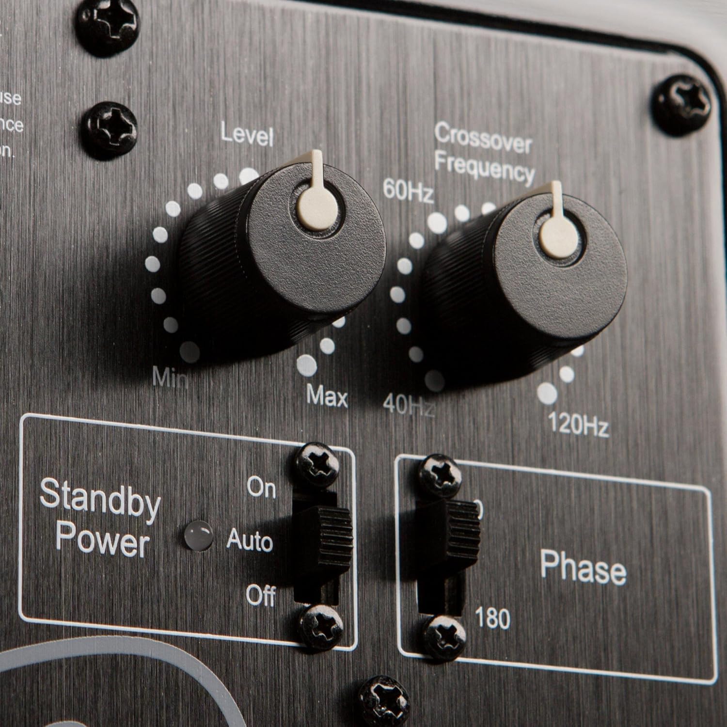 Керування: регулювання гучності, частоти зрізу (кросовер), перемикач фази (0° / 180°)