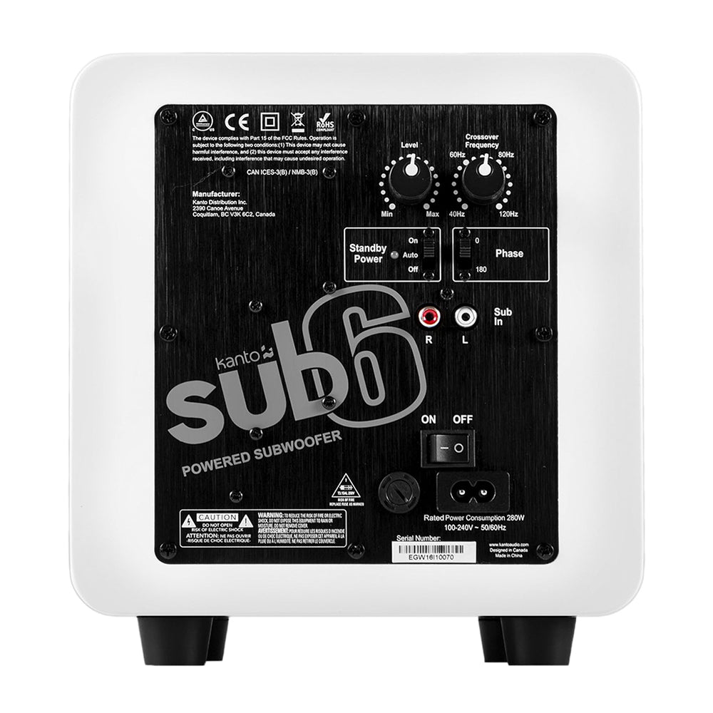 Kanto SUB6 ідеально підходить як для прослуховування музики, так і для перегляду фільмів або роботи в мультимедійних проєктах. Сабвуфер оснащений лінійними RCA-входами, перемикачем фази та функцією автоматичного ввімкнення/вимкнення, що робить його зручним і практичним у щоденному використанні. Це чудове рішення для тих, хто хоче отримати повноцінне, збалансоване звучання з глибокими басами без зайвих налаштувань і складних підключень.