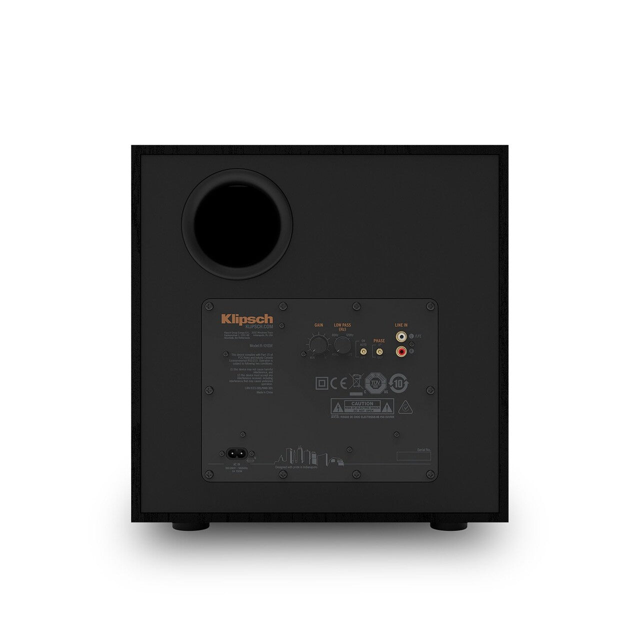 10-дюймовий динамік з графітовим дифузором IMG забезпечує глибокий, щільний бас без спотворень. Лита корзина, потужний магніт і мідне покриття зменшують резонанси та надають стильний вигляд, гармонійний з іншою акустикою Klipsch Reference. Фазоінвертор розташований ззаду.