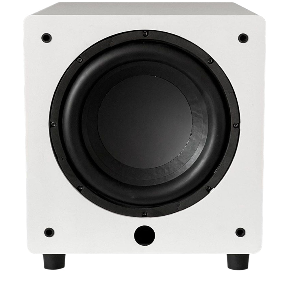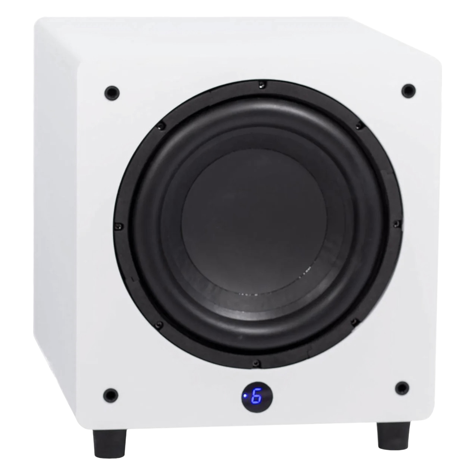 Корпус виконаний із міцної MDF товщиною 20 мм і доступний у чорному або білому кольорі. Сабвуфер обладнаний регульованим низькочастотним фільтром, перемикачем фази 0° / 180° і забезпечує частотний діапазон 29–180 Гц при ±3 дБ. Потужність підсилювача становить до 600 Вт динамічної, а розміри корпусу складають 36 × 42 × 51 см, вага приблизно 18 кг, що робить його зручним для встановлення в домашніх аудіо- та кінотеатральних системах.