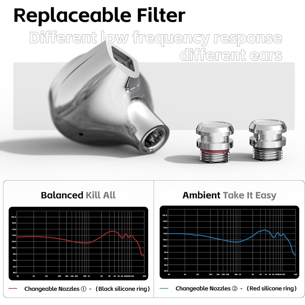 Корпус виготовлено з цинкового сплаву, відшліфованого вручну до дзеркального блиску. Змінний кабель з 2-контактним конектором 0,78 мм забезпечує сумісність із різними кабелями, дозволяючи обрати оптимальний варіант за якістю, текстурою чи надійністю.