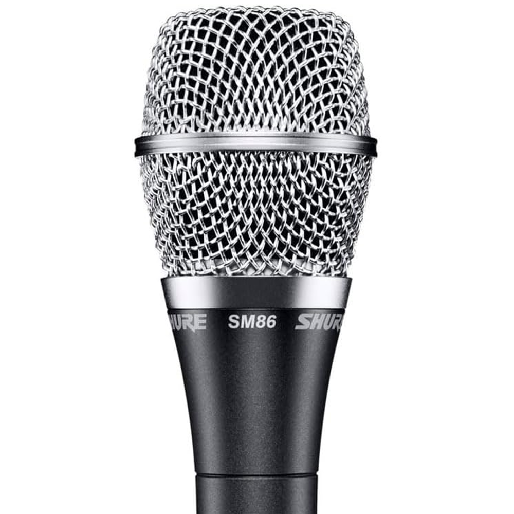 Shure SM86 — це конденсаторний кардіоїдний мікрофон, розроблений для сценічного вокалу. Має студійну якість звучання з чіткою передачею високих частот і витривалу конструкцію, здатну витримати умови гастролей. Кардіоїдна спрямованість ефективно ізолює голос від фонових шумів, що робить SM86 ідеальним для живих виступів, зокрема зі сценічними моніторами або ін-ірами. Вбудований триточковий амортизатор знижує механічні шуми, а двоступінчастий поп-фільтр мінімізує вплив вітру та дихання.