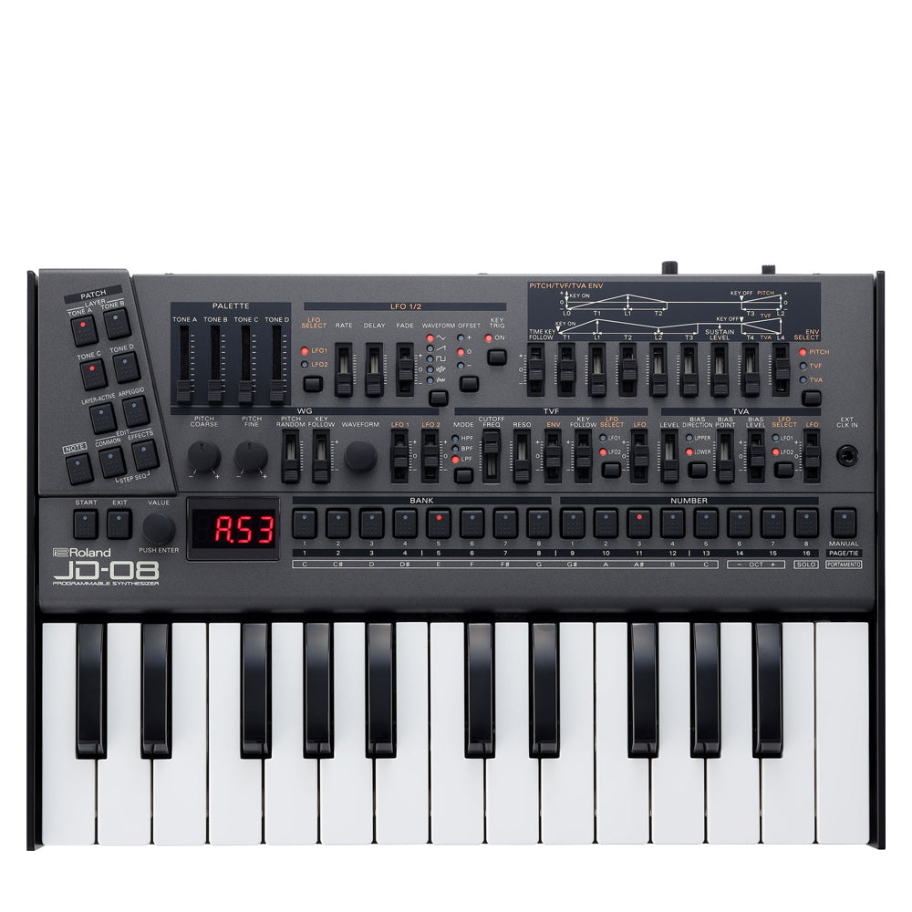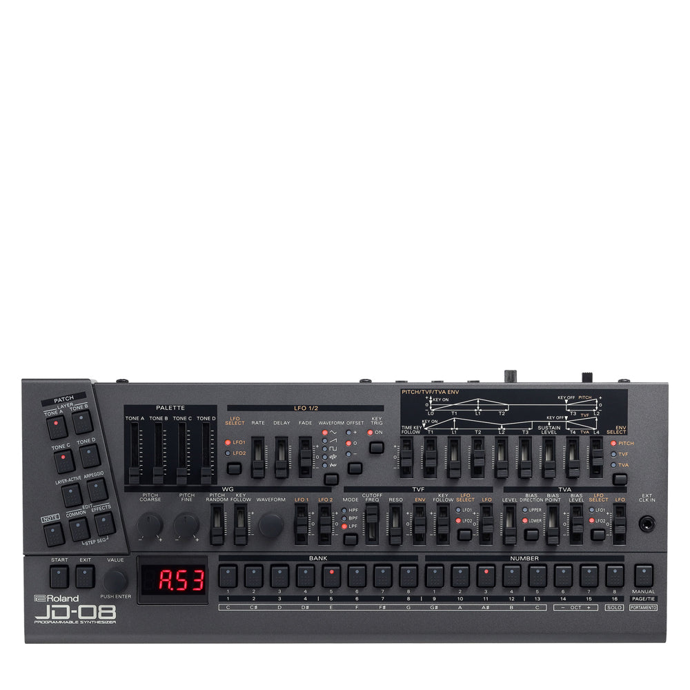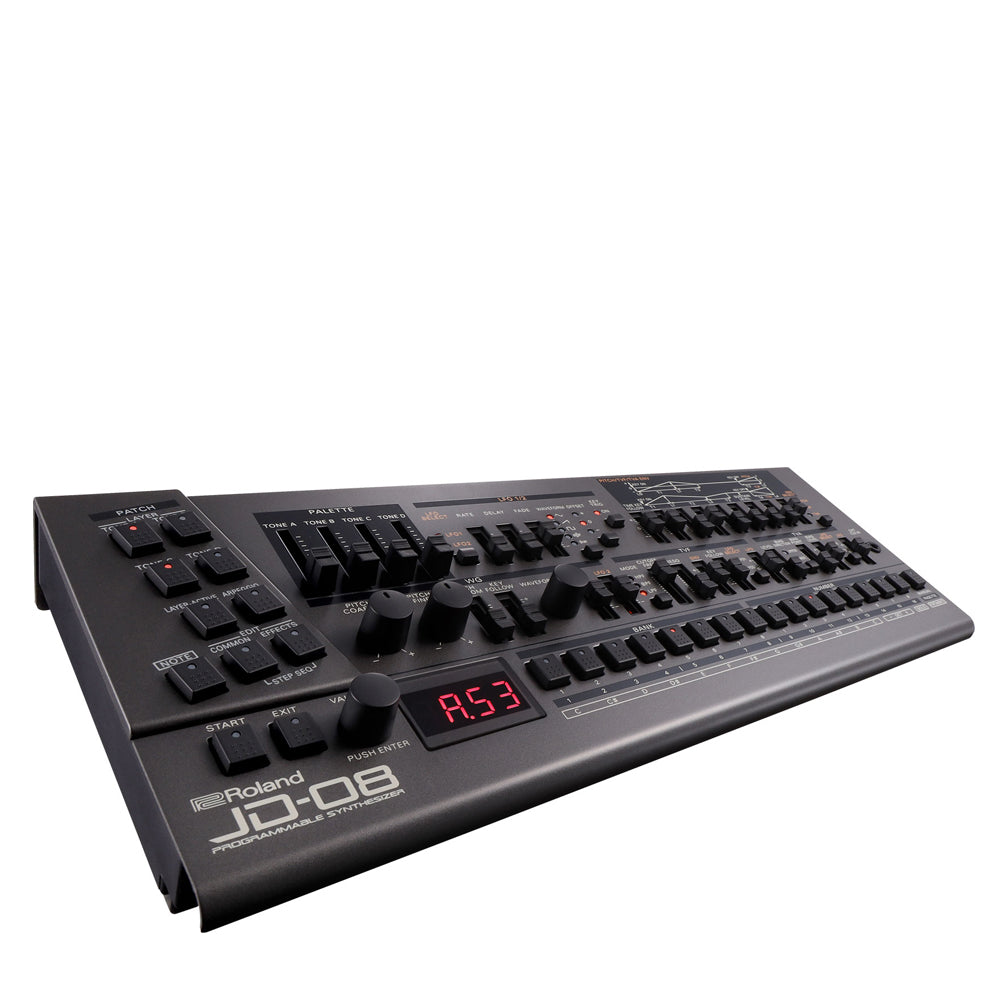 У порівнянні з оригіналом, модуль Boutique JD-08 має низку значних покращень, що роблять його ідеальним для сучасного продакшену: поліфонія була подвоєна, що дозволяє створювати більш насичені звукові ландшафти та уникати обрізання нот. Вперше у цій серії додано вбудований 64-кроковий поліфонічний секвенсор та арпеджіатор для створення складних ритмічних структур. JD-08 працює від батарейок або живлення по USB-C, має вбудований динамік і всі необхідні роз'єми MIDI/USB, що робить його ідеальним інструментом для студії, мобільного продакшену та живих виступів.