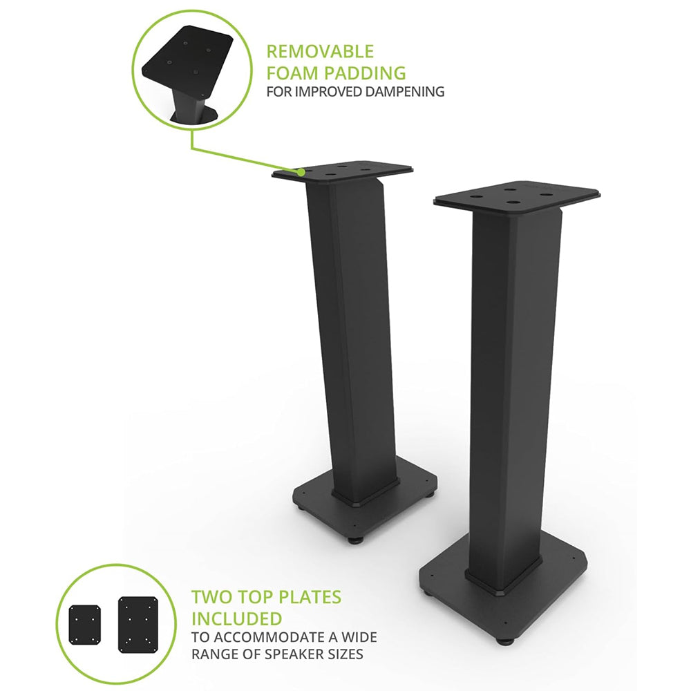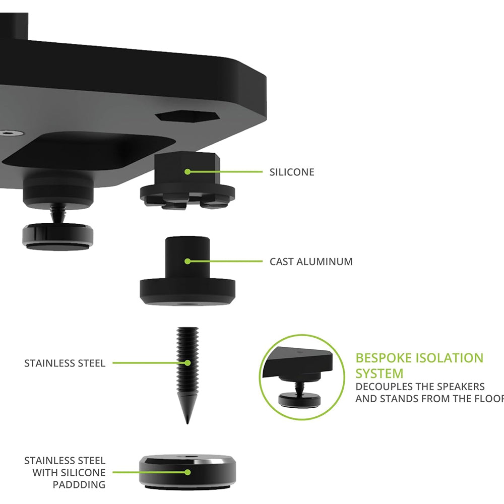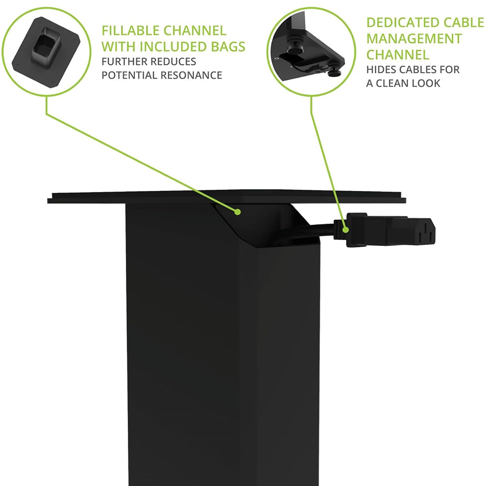 Стійки під акустику серії SX преміум-класу з унікальною системою ізоляції забезпечують відмінну звукову якість, розділяючи колонки з підлогою для кращої аудіо-передачі. Завдяки системі регулювання рівня, яку легко налаштувати, ви зможете досягти ідеального положення колонок без зайвих зусиль. Міцні підставки мають спеціальний канал для акуратного зберігання кабелів, а також простір у колонці, куди можна помістити субстрат за вашим вибором для кращого демпфування. Диски з силіконовими прокладками для твердих підлог захищають ваше дерево від подряпин, а додаткові накладки на верхній частині підставок допомагають знижувати вібрації для чистого звуку.