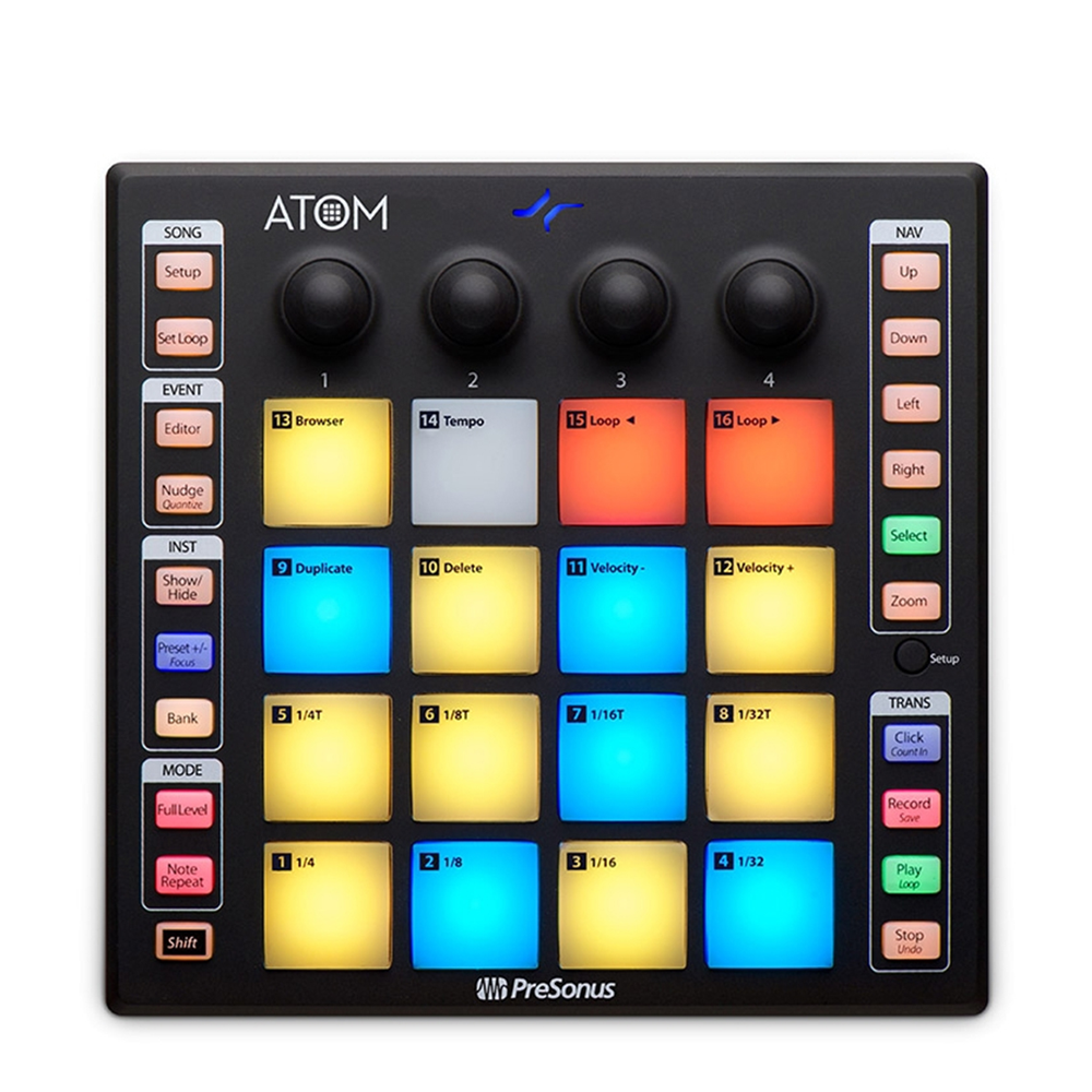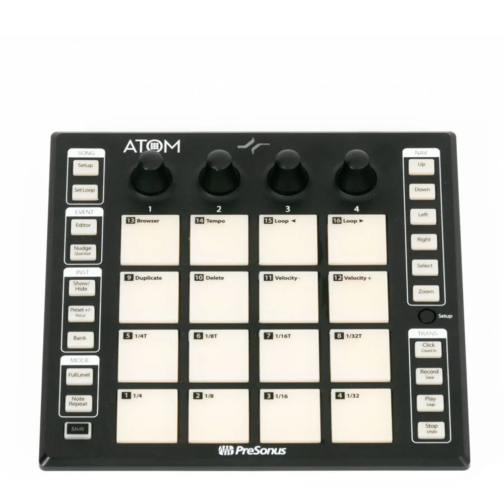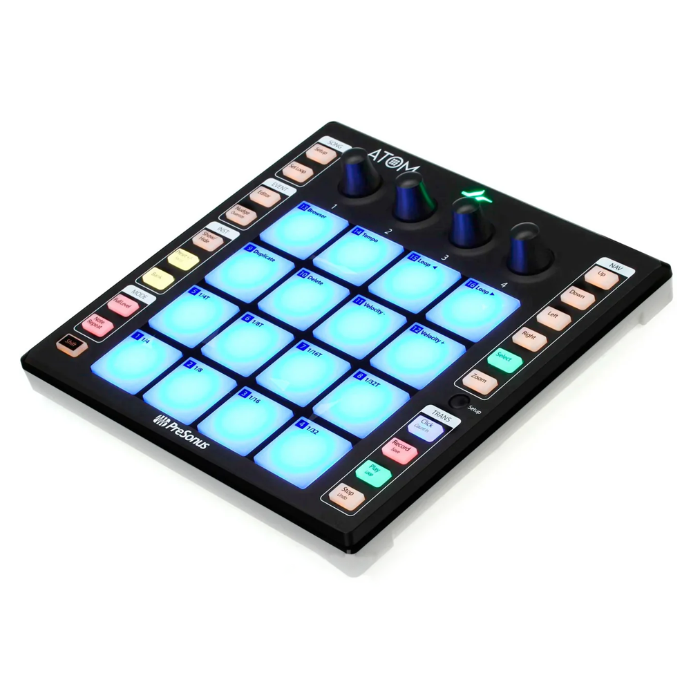 PreSonus ATOM — компактний MIDI-контролер і творче середовище для створення музики. У комплекті з Studio One Artist він дозволяє легко писати біти, грати на віртуальних інструментах та запускати семпли й лупи з високою виразністю.