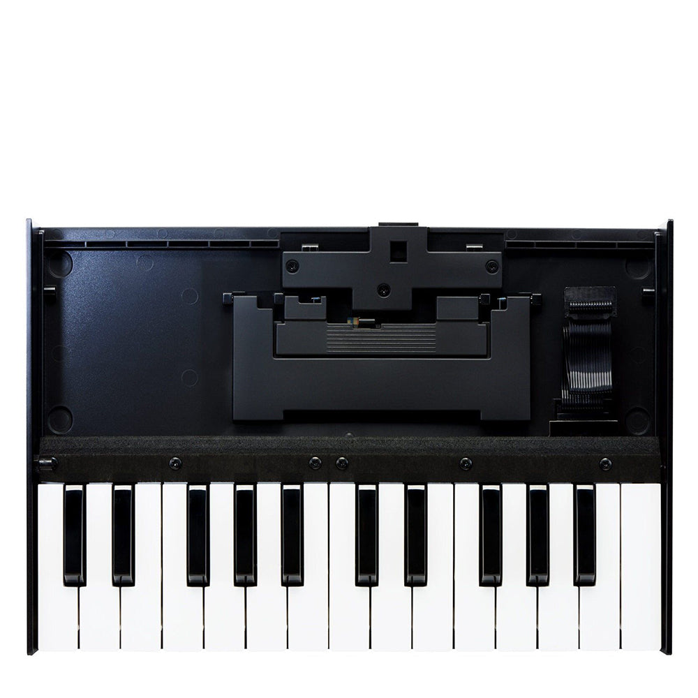Roland K-25m — це міні-клавіатурний модуль, створений спеціально для серії Roland Boutique. Він оснащений 25 міні-клавішами й забезпечує повноцінне керування параметрами звуку в реальному часі. Клавіатура розпізнає швидкість натискання (velocity) і підтримує транспонування в діапазоні кількох октав, що дозволяє комфортно виконувати партії басу, акордів чи мелодій. Конструкція K-25m інтегрується з усіма Boutique-модулями, перетворюючи їх на повноцінний компактний синтезатор.