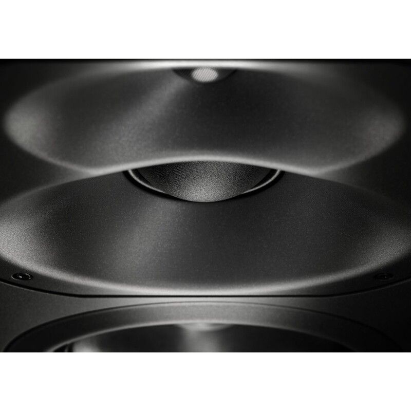 Монітор оснащений чотирма незалежними динамічними секціями та вбудованими підсилювачами класу D для кожного діапазону частот. Вбудований DSP дозволяє точно налаштовувати частотну характеристику й адаптувати звучання під акустику приміщення, забезпечуючи стабільну й природну передачу звуку навіть у великих студійних кімнатах. Компактний і міцний корпус у антрацитовому сірому кольорі додає монітору сучасного вигляду і легко інтегрується у будь-яке робоче середовище.