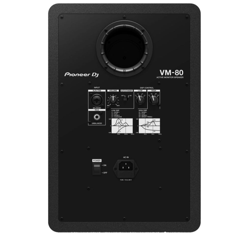 Pioneer DJ VM-80 - елегантний 2-смуговий активний студійний монітор , який дозволить вам насолоджуватися звуком. Девайс оснащений RCA і комбінованим входом XLR/TRS, а також містить у собі підсилювач класу D потужністю 90 Вт для живлення 6,5-дюймового низькочастотного і 30 Вт для 1-дюймового високочастотного динаміків з м'яким куполом. Акустична система передбачає частотну характеристику від 34 Гц до 36 кГц для поліпшення високих частот і має корпус із МДФ і вінілового ламінату зі зверненим назад басовим портом. Усі динаміки цієї серії забезпечують чистий звук із потужними та глибокими басами. Щоб відрегулювати вихід і підібрати ідеальне звучання під робоче приміщення можна виконати налаштування DSP за допомогою двох регуляторів на задній панелі: Low EQ і High EQ. Ба більше, зручна конструкція не зобов'язує дивитися на ці елементи керування під час перемикання за 4 різними положеннями, щоб отримати 16 можливих варіантів налаштувань еквалайзера.