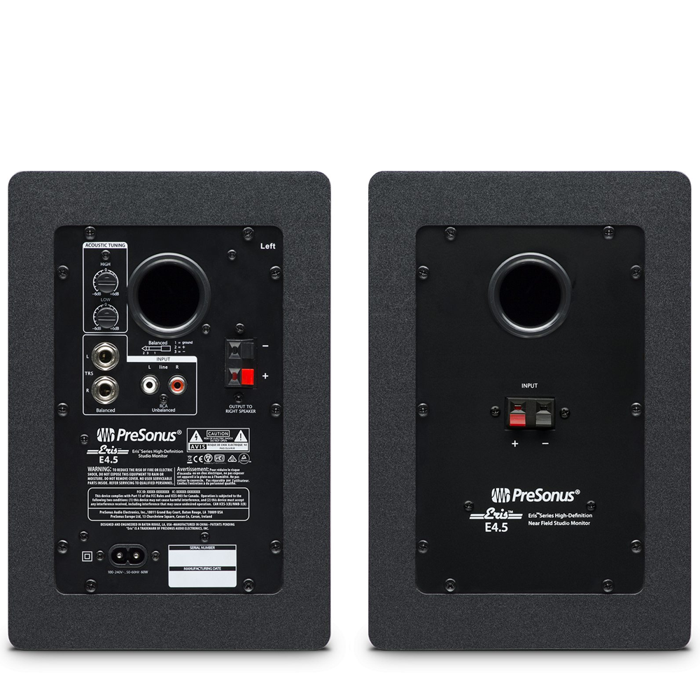 Один із моніторів є активним та містить вбудований підсилювач класу AB (25 Вт на кожну колонку), другий — пасивний і підключається до активного. Eris E4.5 призначені для ближнього поля та чудово підходять для роботи в студії під час запису, мікшування та мастерингу.