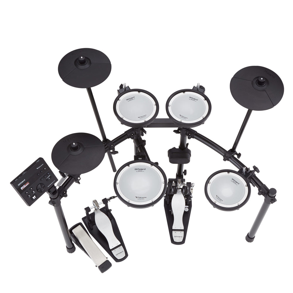 Електронна ударна установка Roland TD-07DMK відкриває професійні можливості серії V-Drums у компактному форматі для домашніх занять. Малогабаритна рама та сітчасті педи малого барабана й томів забезпечують тиху гру з природним відскоком палички. Звуковий модуль TD-07 пропонує широкий вибір готових наборів ударних, які можна детально редагувати під власні потреби за допомогою вбудованих інструментів налаштування.