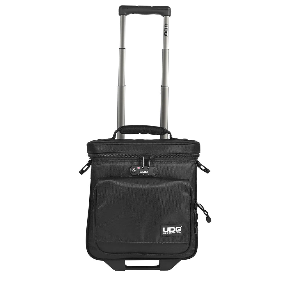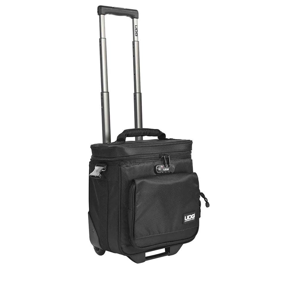 UDG Ultimate Trolley To Go Black — компактний тролі-кейс для діджеїв і продюсерів, створений для безпечного перевезення платівок, контролерів і студійних аксесуарів. Щільний водовідштовхувальний нейлон захищає від дощу та зношування, посилене дно тримає форму, а міцна фурнітура витримує регулярні поїздки. Плавні колеса та телескопічна ручка забезпечують комфортне пересування містом і між локаціями, зберігаючи обладнання впорядкованим.