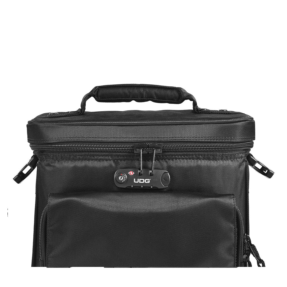 Внутрішній простір продуманий для швидкого доступу: основне відділення для платівок 12″ або техніки, м’яка підкладка для амортизації, органайзери для кабелів і дрібниць, окреме місце для навушників. Стриманий чорний дизайн легко поєднується з іншим спорядженням, а ергономіка дозволяє витрачати менше часу на пакування і більше — на музику.