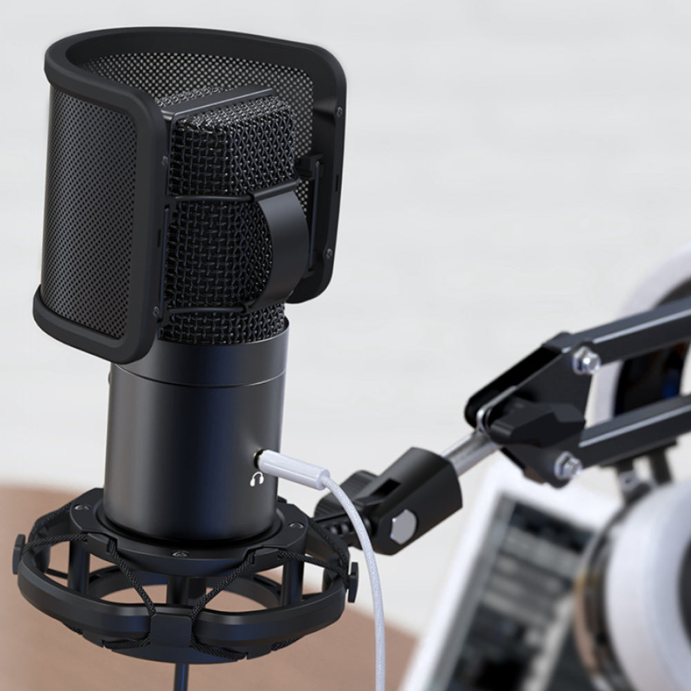 Мікрофон має USB-кабель із розгалуженням на Type-C, тож легко підключається не лише до комп’ютера, а й до смартфона. Завдяки навушниковому виходу можна в реальному часі контролювати якість запису.