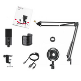 Fifine T683 — стильний студійний мікрофон із чітким і чистим звучанням, який ідеально підходить для запису подкастів, стрімів, озвучки чи онлайн-зустрічей. У комплекті — пантограф-стійка з надійним кріпленням, металевий поп-фільтр і антишокове кріплення.