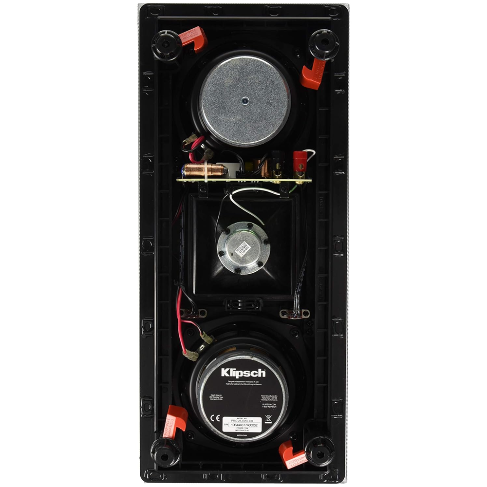 Klipsch PRO-25RW LCR — 2-смугова акустична система, яка вбудовується безпосередньо в стіну, ідеально підходить для використання як центральний канал у домашньому кінотеатрі. Оснащена 25 мм поворотним твітером з алюмінієвим куполом у рупорі Tractrix® та двома 133 мм НЧ-динаміками з графітовим наповненням (IMG). Працює в діапазоні 56 Гц – 23 кГц при потужності 75–300 Вт.