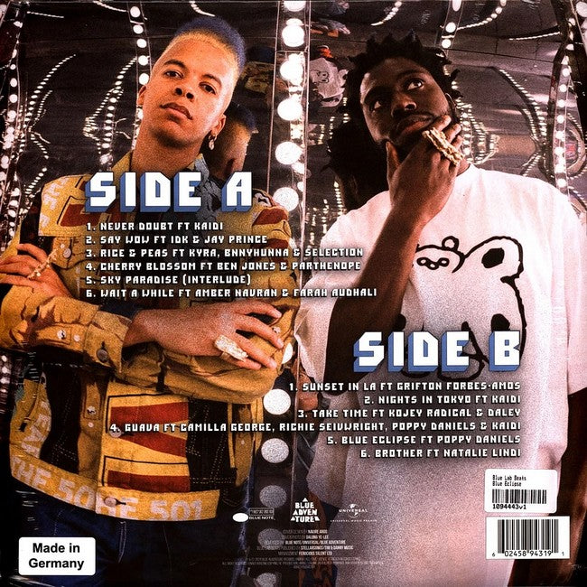Blue Lab Beats – Blue Eclipse — альбом британського дуету, який поєднує джазові, соул та електронні елементи, створюючи унікальний сучасний саунд. Платівка відзначається багатошаровими ритмами, глибокими басами та атмосферними мелодіями, що поєднують імпровізацію з чітко структурованими композиціями, демонструючи технічну майстерність і креативність артистів.