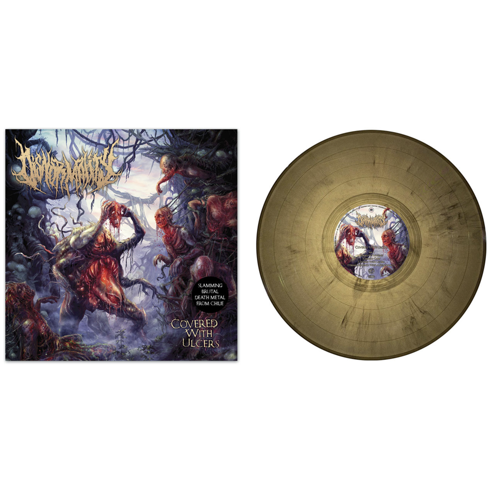 Disnormality – Covered With Ulcers [LP, Marble Gold] – дебютний повноформатний альбом чилійської слем/брутал-дез-метал групи Disnormality, виданий у 2023 році на лейблі Moon Records у яскравому вініловому оформленні Marble GoldЦе реліз не для слабких духом — "Covered With Ulcers" здатний вразити своєю агресією та ритмічністю, ставши справжнім подарунком для фанатів наджорсткого звучання.