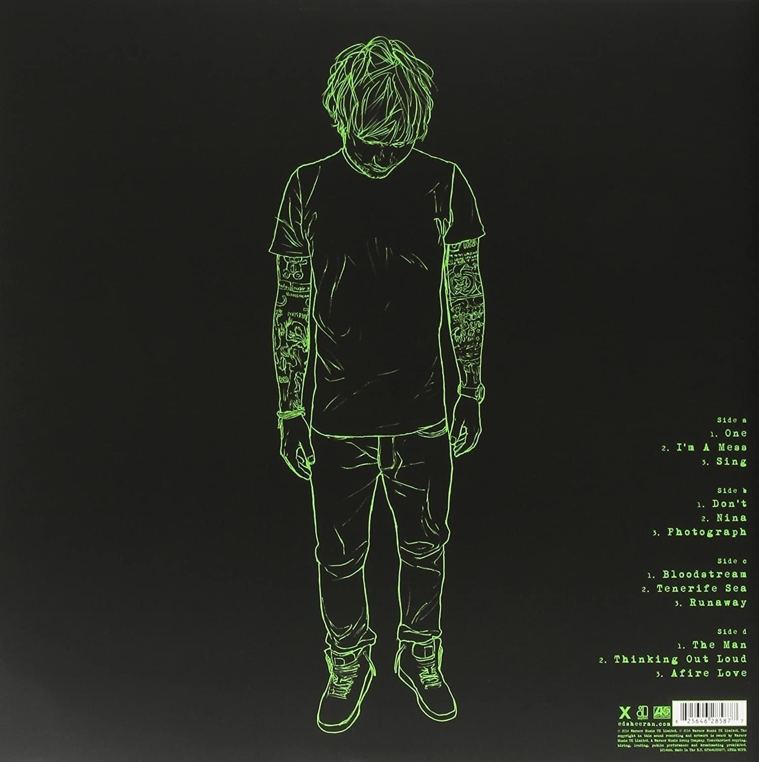 Ed Sheeran - X [2LP] – другий студійний альбом ($\boldsymbol{\times}$, читається "Multiply"), (2014) британського співака та автора пісень Еда Ширана, представлений у форматі подвійного вінілу. Цей альбом став його глобальним проривом, поєднуючи його фірмовий фолк-поп з більш комерційними, денс-поповими та R&B-орієнтованими елементами. Ширан зберіг акустичну основу, але додав більше електронного та студійного продакшену. Платівка містить світові хіти «Sing», «Thinking Out Loud» та «Don't».