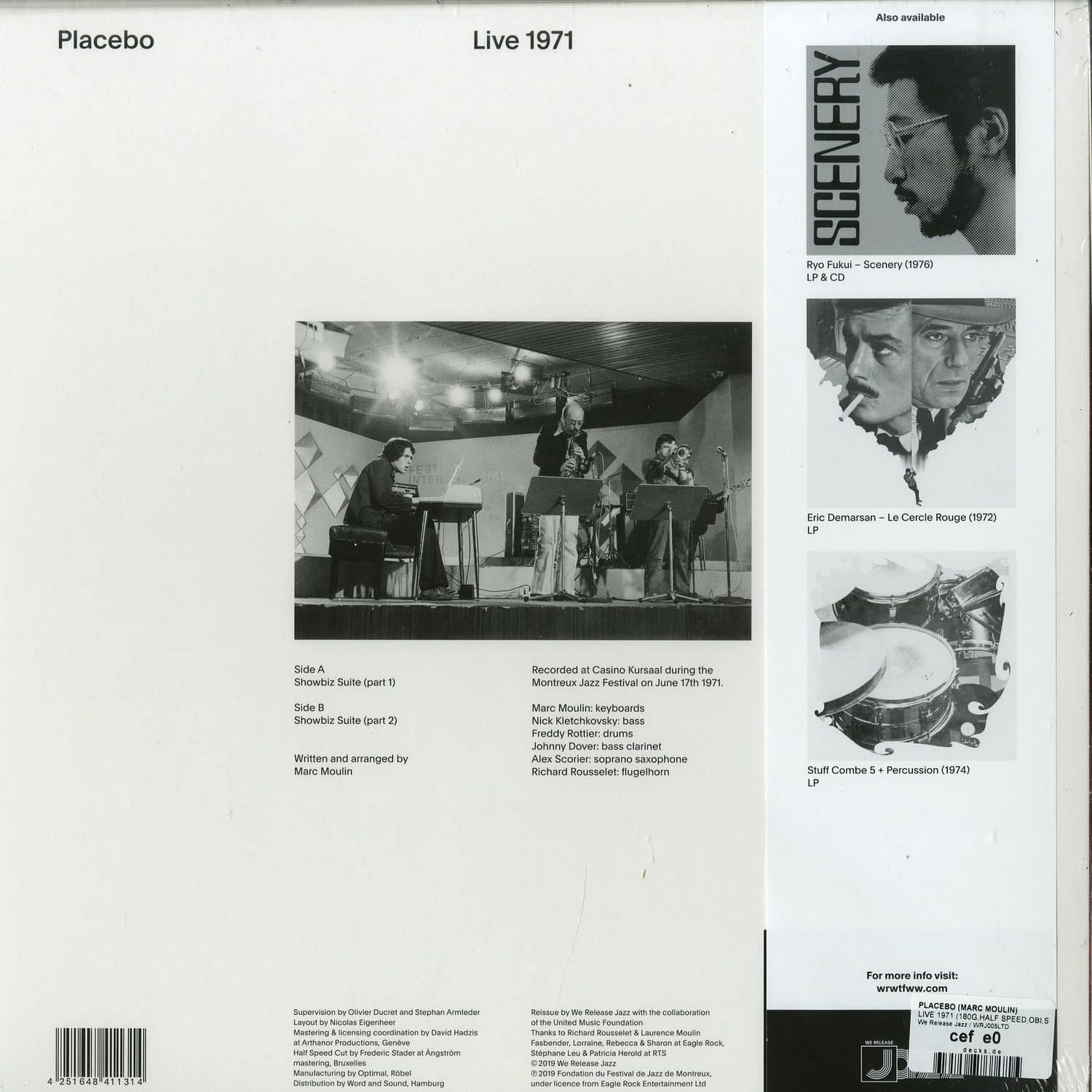 Ця 12-дюймова вінілова платівка представляє концертний запис гурту Placebo 1971 року. Важливо зазначити, що це не британський альтернативний рок-гурт Placebo (заснований у 1994 році), а однойменний, але інший гурт – бельгійський джаз-фанк / ф'южн колектив, який був активним у 1970-х роках. Цей запис часто випускається як лімітоване видання, пропонуючи шанувальникам рідкісний матеріал.
