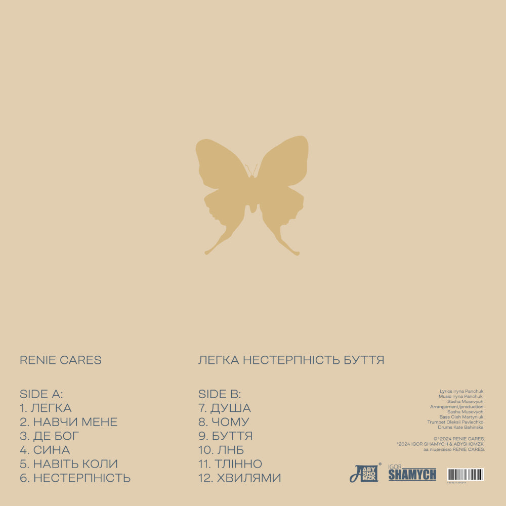 Це дебютний альбом української співачки та авторки пісень Renie Cares (Ірина Дорофеєва), випущений у 2024 році. Платівка пропонує слухачеві зануритися у світ інді-попу з елементами електроніки та ліричних текстів. Альбом "Легка Нестерпність Буття" досліджує теми стосунків, емоцій та самоідентифікації, передаючи їх через чуттєвий вокал та атмосферні аранжування. Це кольорове вінілове видання підкреслює особливість релізу та додає естетичної цінності для колекціонерів, а також є важливим представником сучасної української музичної сцени.