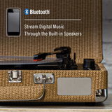 Представляємо Crosley Cruiser Deluxe ! Цей програвач, як і раніше, має чарівний корпус у вигляді валізи, але тепер ви можете налаштовувати швидкість запису за допомогою розширених налаштувань управління висотою звуку або легко синхронізуватися зі з'єднанням Bluetooth і транслювати цифрову музику прямо через вбудовані динаміки. Влаштовуйте джеми один на один з роз'ємом для навушників або під'єднуйте динаміки через порти RCA, щоб звучати голосно. Виберіть з веселки звуків, щоб почати свою пригоду з вінілом з цим портативним трьохшвидкісним програвачем.