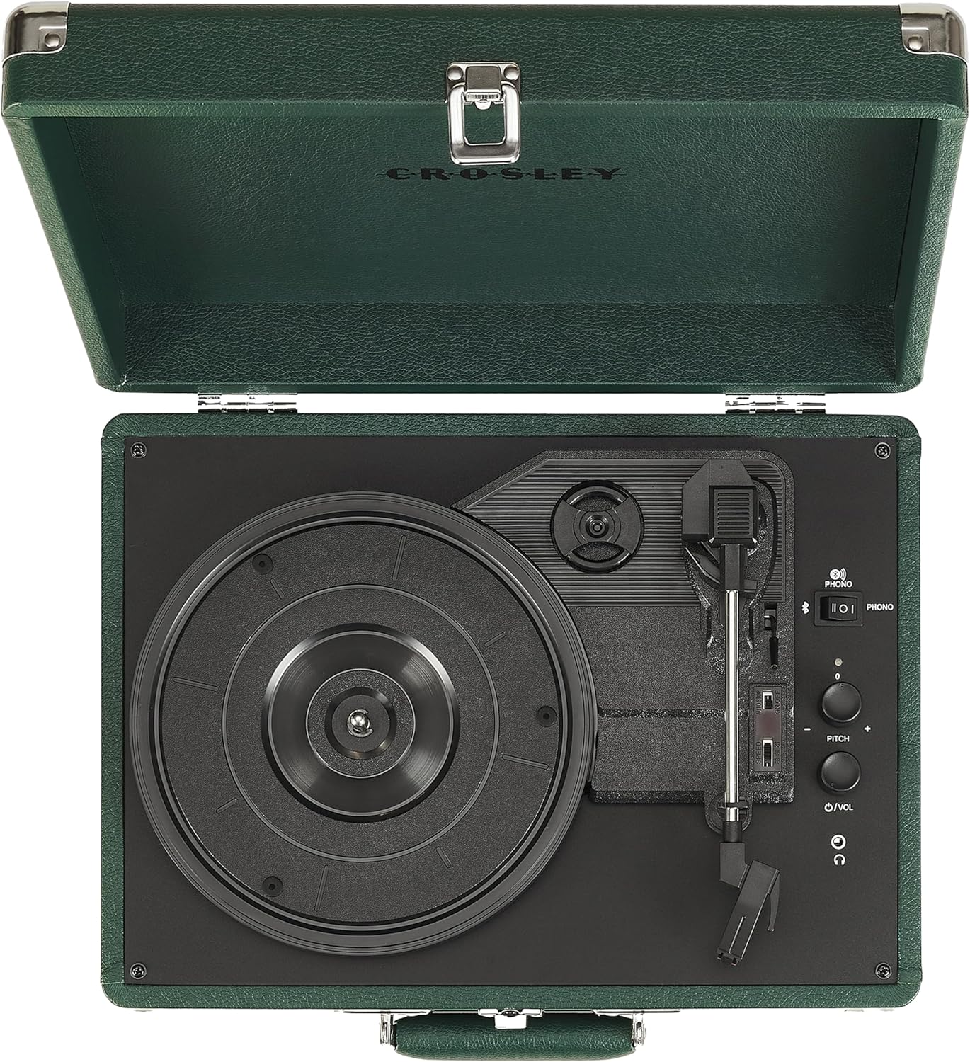 Представляємо Crosley Cruiser Deluxe ! Цей програвач, як і раніше, має чарівний корпус у вигляді валізи, але тепер ви можете налаштовувати швидкість запису за допомогою розширених налаштувань управління висотою звуку або легко синхронізуватися зі з'єднанням Bluetooth і транслювати цифрову музику прямо через вбудовані динаміки. Влаштовуйте джеми один на один з роз'ємом для навушників або під'єднуйте динаміки через порти RCA, щоб звучати голосно. Виберіть з веселки звуків, щоб почати свою пригоду з вінілом з цим портативним трьохшвидкісним програвачем.