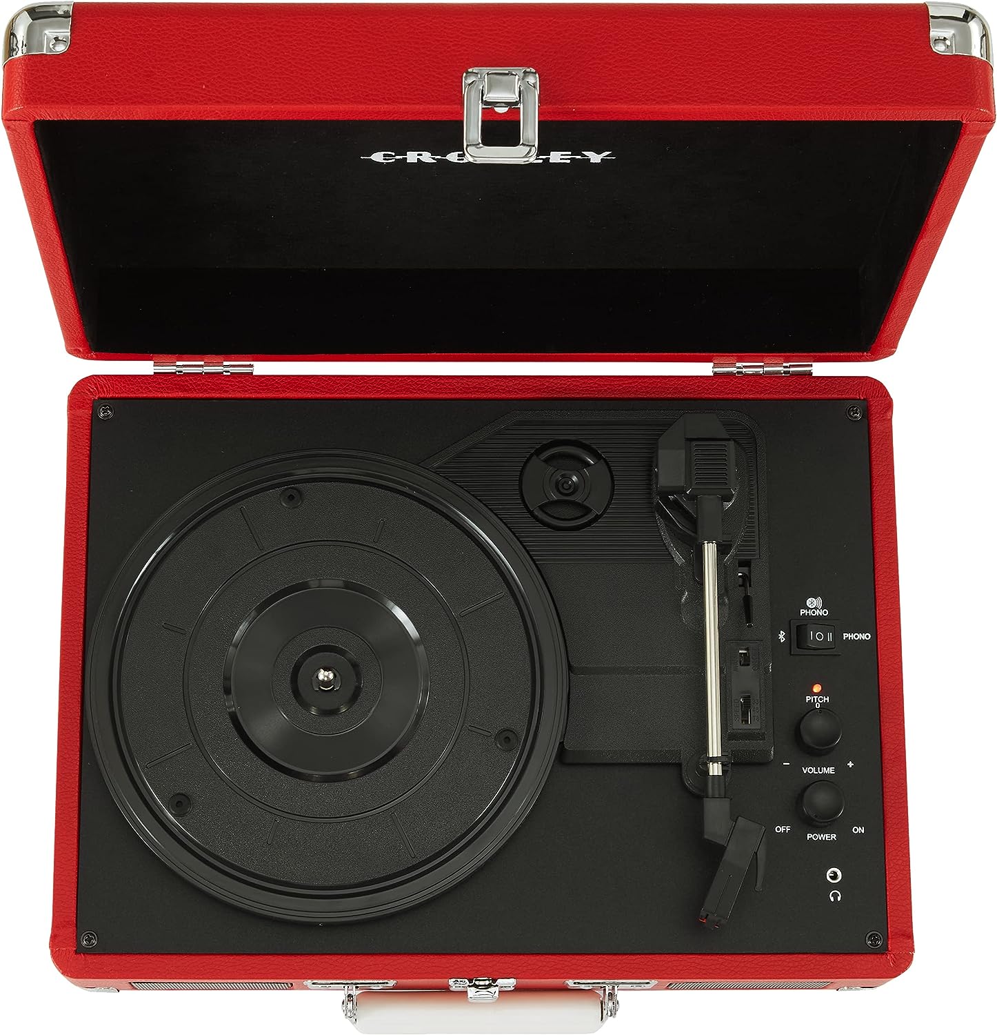 Представляємо Crosley Cruiser Deluxe ! Цей програвач, як і раніше, має чарівний корпус у вигляді валізи, але тепер ви можете налаштовувати швидкість запису за допомогою розширених налаштувань управління висотою звуку або легко синхронізуватися зі з'єднанням Bluetooth і транслювати цифрову музику прямо через вбудовані динаміки. Влаштовуйте джеми один на один з роз'ємом для навушників або під'єднуйте динаміки через порти RCA, щоб звучати голосно. Виберіть з веселки звуків, щоб почати свою пригоду з вінілом з цим портативним трьохшвидкісним програвачем.