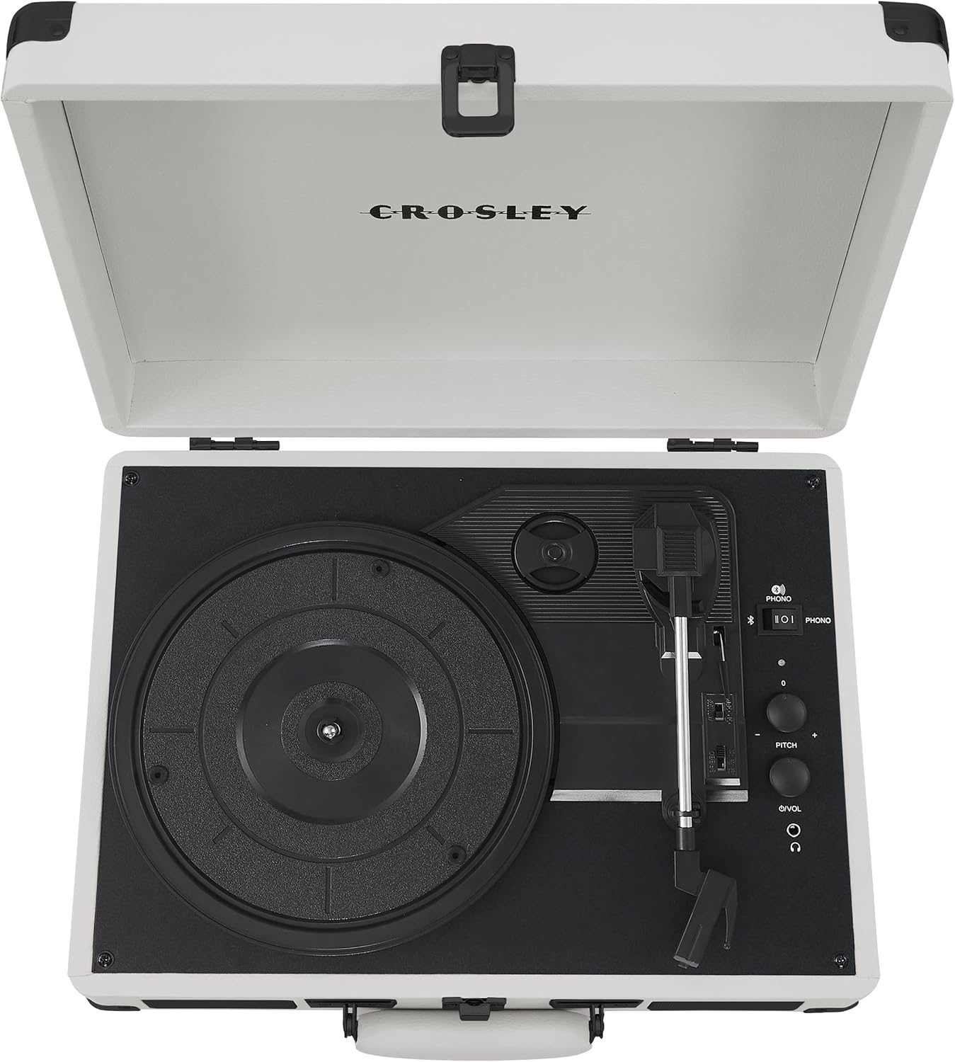 Представляємо Crosley Cruiser Deluxe ! Цей програвач, як і раніше, має чарівний корпус у вигляді валізи, але тепер ви можете налаштовувати швидкість запису за допомогою розширених налаштувань управління висотою звуку або легко синхронізуватися зі з'єднанням Bluetooth і транслювати цифрову музику прямо через вбудовані динаміки. Влаштовуйте джеми один на один з роз'ємом для навушників або під'єднуйте динаміки через порти RCA, щоб звучати голосно. Виберіть з веселки звуків, щоб почати свою пригоду з вінілом з цим портативним трьохшвидкісним програвачем.