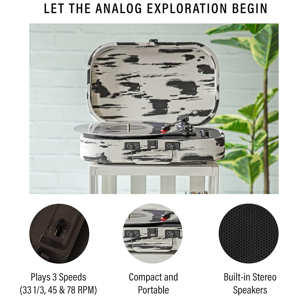 Цей портативний програвач із трьома швидкостями (33 1/3, 45, 78 об/хв) готовий до гри прямо з коробки. Вбудовані стереодинаміки дозволяють просто підключати та грати, є виходи RCA, якщо ви хочете підключити Discovery до ресивера або активних динаміків.